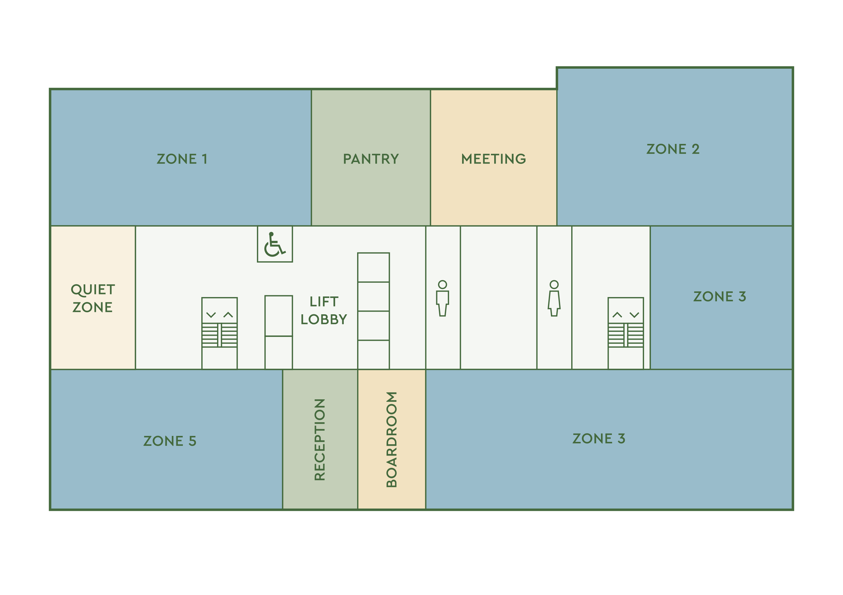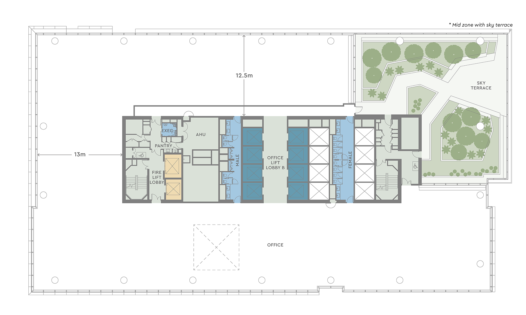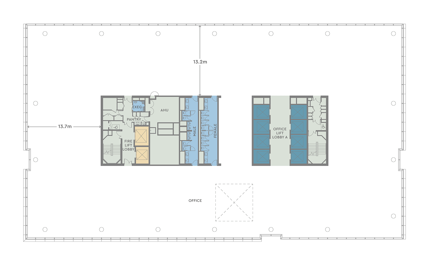 - Views upon arrival to the north and south of lift lobby zone with potential for an interconnecting staircase