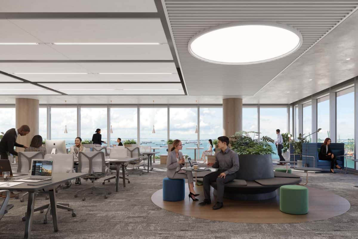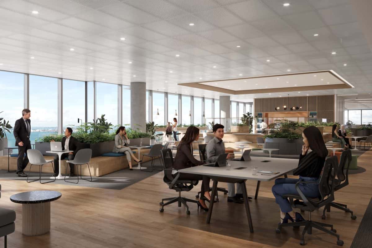 Enjoy expansive high-floor views from an open-concept office that provides spaces for collaboration and relaxation.
