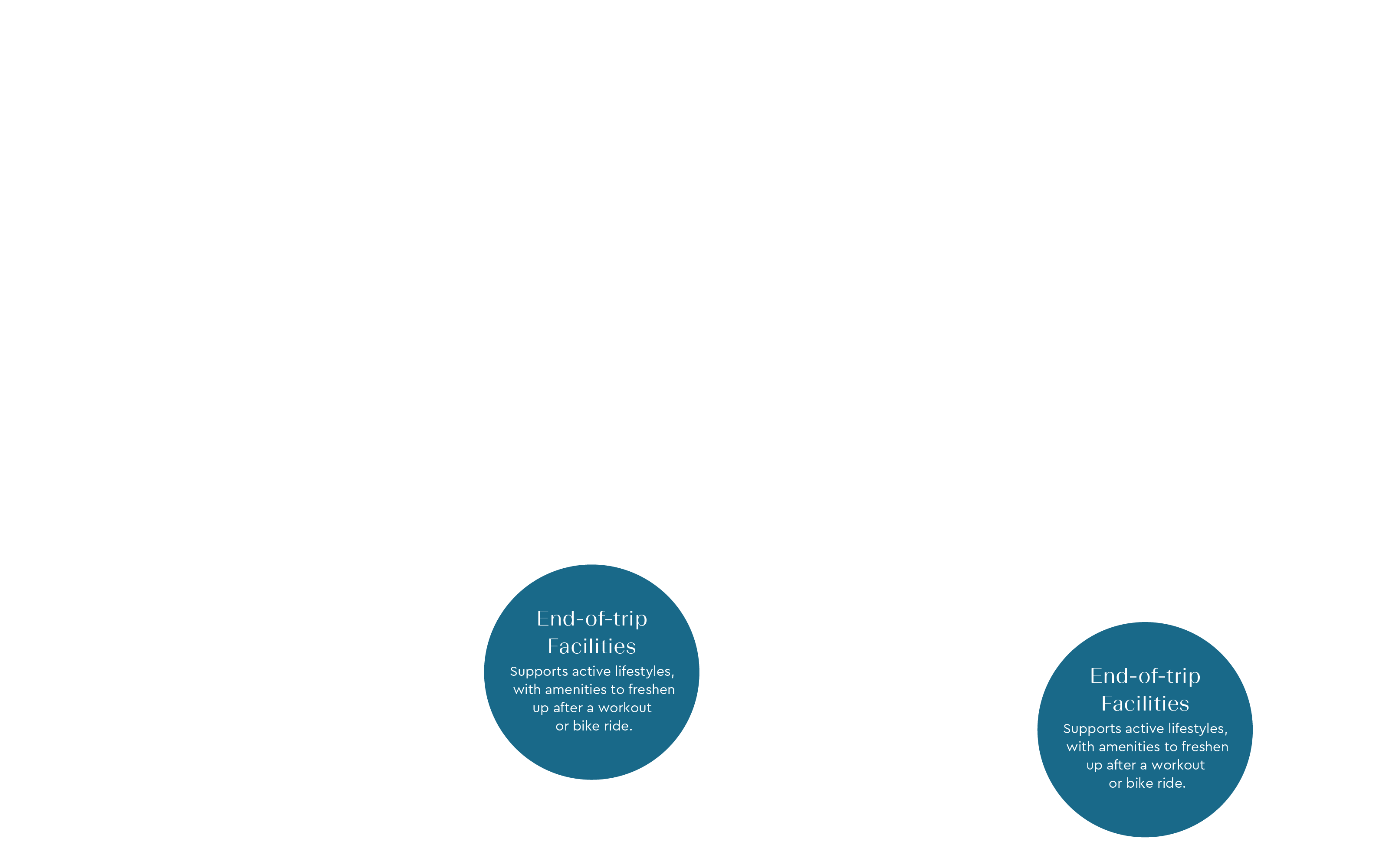 Supports active lifestyles, with amenities to freshen up after a workout or bike ride.