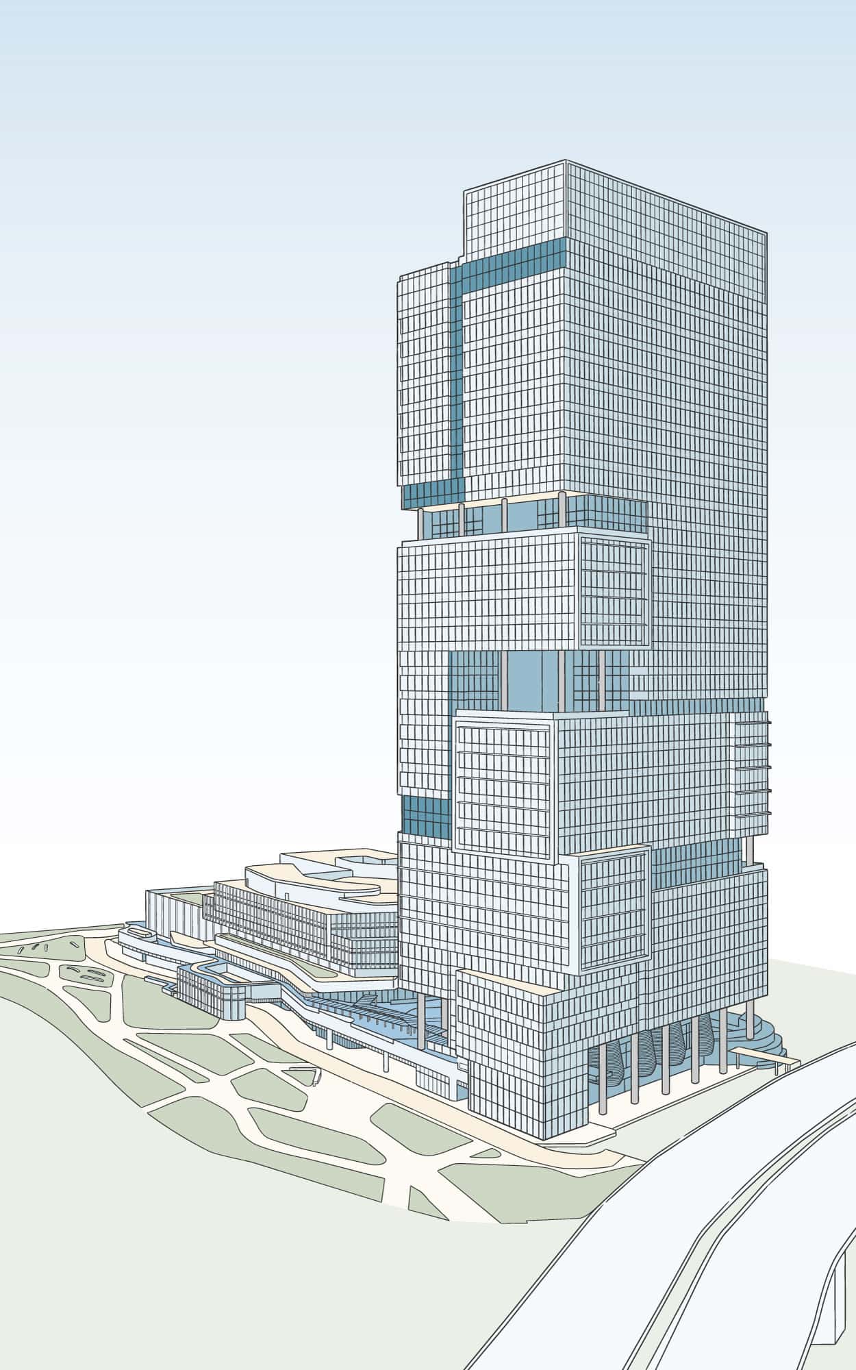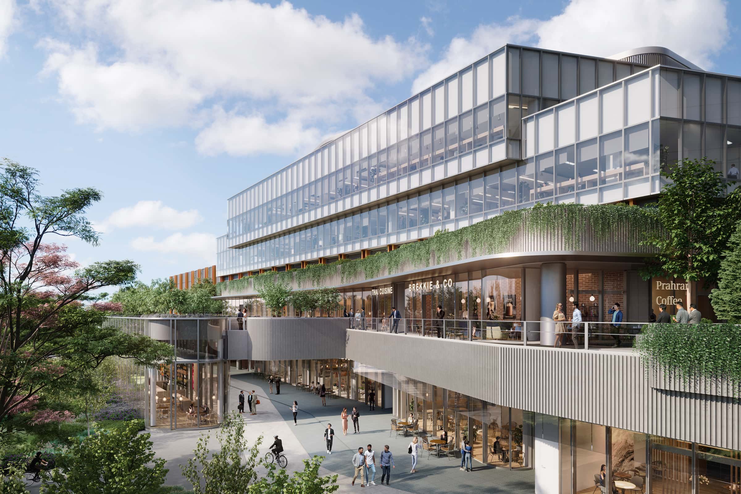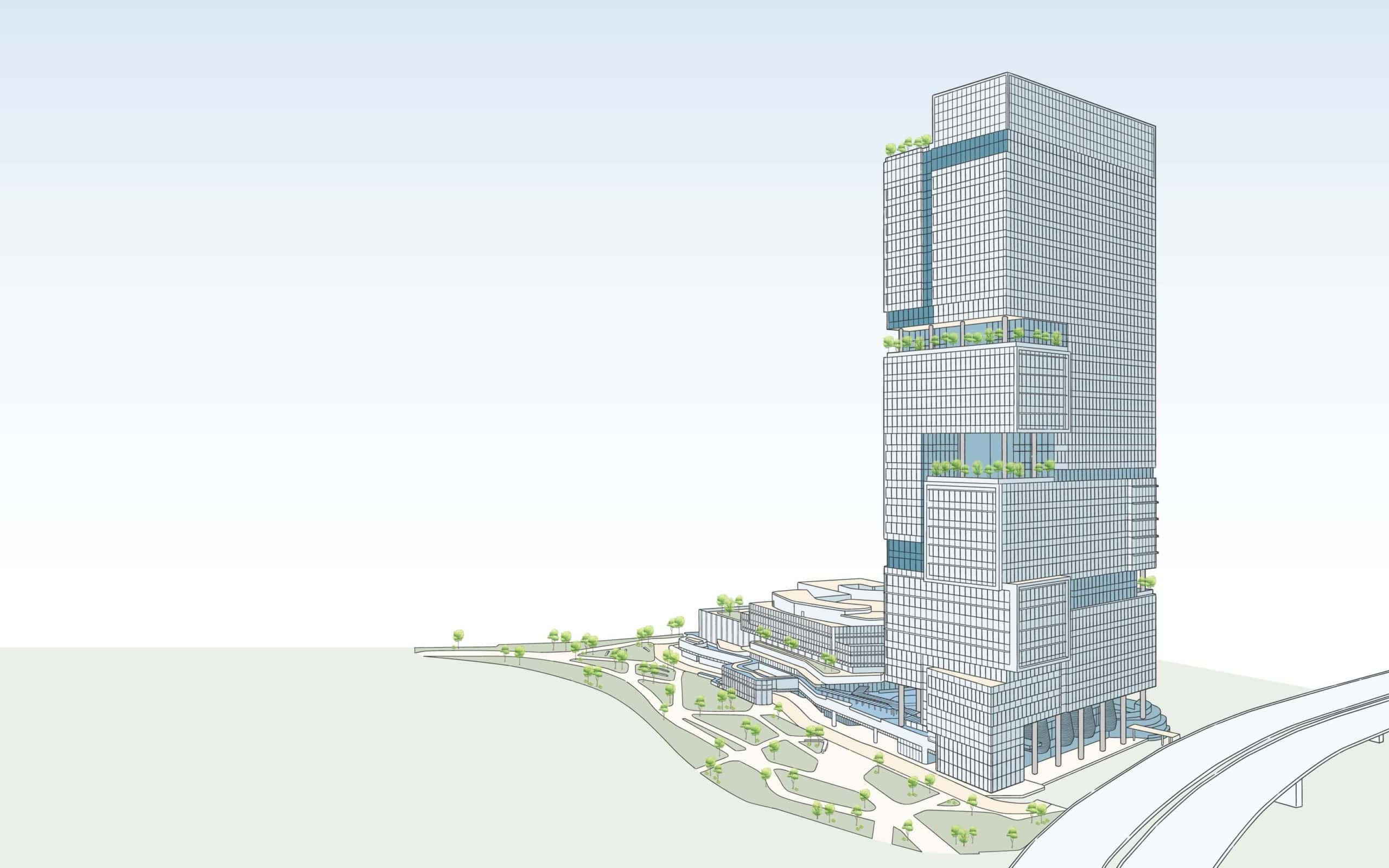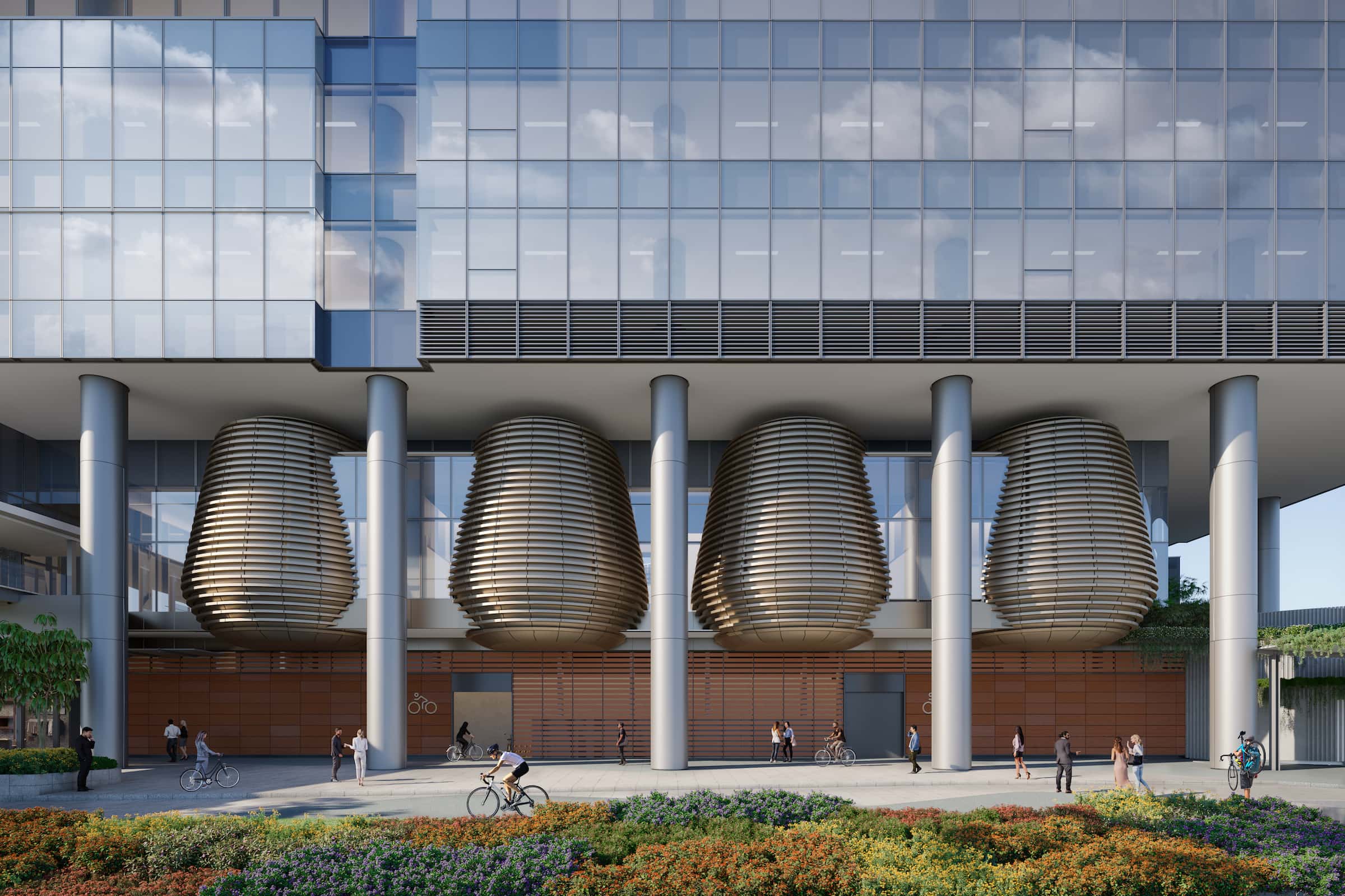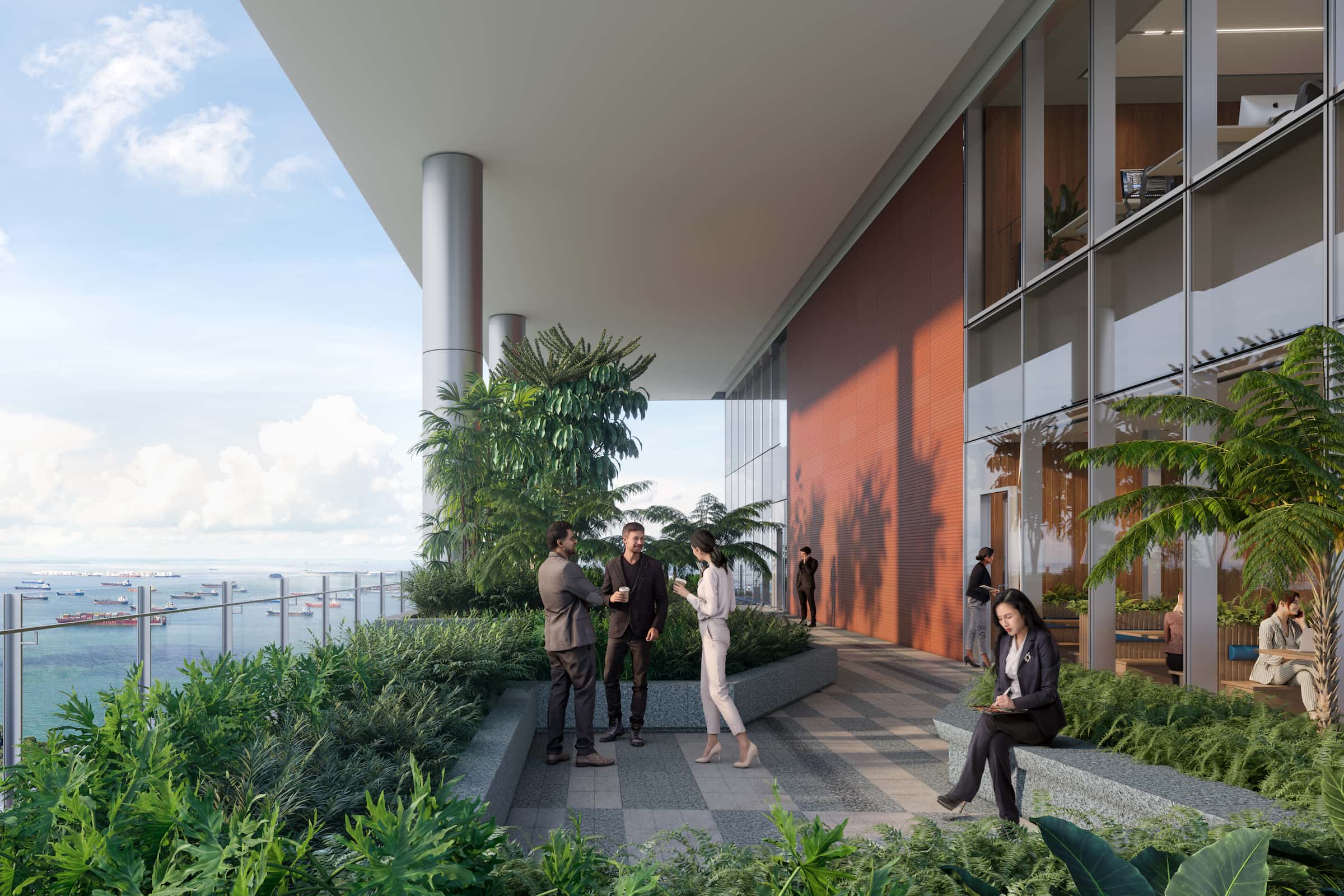 Five sky terraces distributed throughout the building provide invigorating spaces to take breaks throughout the day.